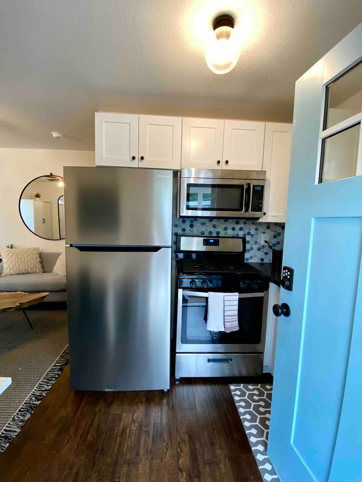 KEDVEZMÉNY A HOSSZÚ TÁVÚ FOGLALÁSOKRA! Ezt az elegáns, tanyasi stílusú stúdiót teljesen felújították, és professzionálisan tervezték meg. Az otthonunk kényelmesen elfér legfeljebb 4 fő számára. Az otthonban lehúzható sötétítők, nagyméretű memóriahabos ágy, légkondicionáló és fűtőegység, nyomtatók, gyors wifi, kábeles TV, 65 hüvelykes okostévé, teljesen felszerelt konyha főzőeszközökkel és alapvető fűszerekkel, plüss ágynemű, sampon/hajkondicionáló/tusfürdő, tágas fürdőszoba nagy zuhanyzóval és mosókosár önálló mosó- és szárítógéppel.