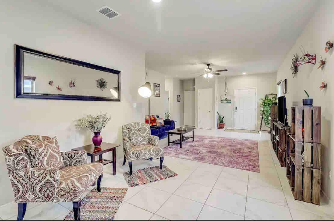 Üdvözlünk bájos Texy-Mexy bungalónkban, ahol a Lone Star State szellemisége találkozik Mexikó élénk ízeivel! Lépj be ebbe a hangulatos, egyszintes menedékhelybe, és merülj el a Texas és Mexikó gazdag kulturális fúziója által inspirált meleg és hívogató légkörben. Az összes nagyobb helyszíntől legfeljebb 15 percre található szálláshelyen könnyedén felfedezheted a várost! A bungaló tökéletes az otthonukra váró katonai családoknak vagy azoknak, akik egyszerűen imádják San Antoniót! Bienvenido!