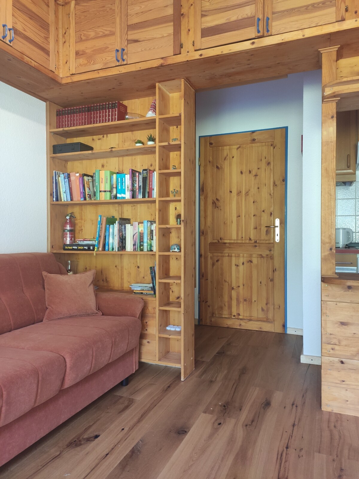Apartment in a 250-year-old farmhouse at an altitude of around 1,100 meters with a spacious terrace, garden and sauna. It extends over (the upper) three floors and has around 80 m2. In addition to the living room, (living) kitchen and bathroom, there are four bedrooms. One of the bedrooms is on the ground floor and has its own entrance to the outside. The bathroom and the remaining bedrooms are upstairs. The bedroom in the attic can only be reached via the second bedroom on the upper floor.