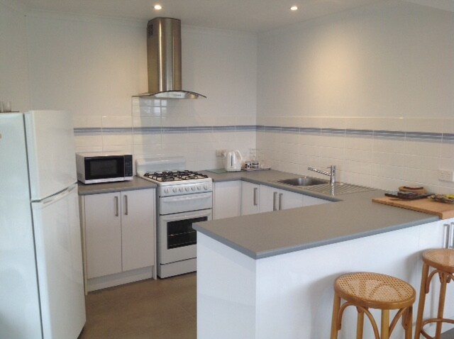 Világos, szellős, modern, önellátó stúdióapartman csendes udvarban, ahonnan lenyűgöző kilátás nyílik az óceánra, a tavakra és a Mallacoota bejáratára. Festői, 15 perces tóparti séta a kávézókhoz, galériákhoz, pékségekhez és szupermarketekhez . Teljesen felszerelt konyha, nyitott terű társalgó szomszédos hálószobával és külön modern fürdőszobával. Kültéri grillezőhely . Széles franciaágy és egyszemélyes ágy az alvóhelyen .