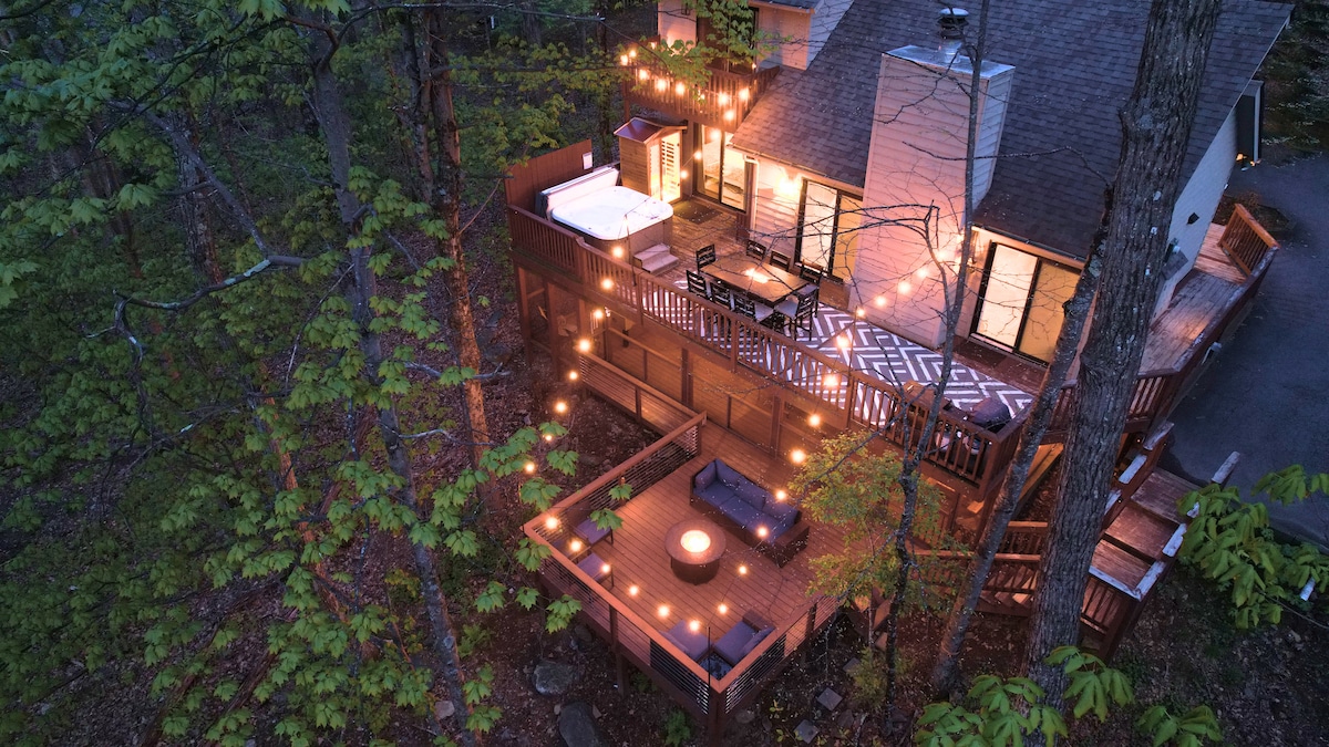 GREENWOOD VISTA - Menekülj a Blue Ridge-hegység mentén elterülő modern hegyi menedékünkbe. Akár a Shenandoah Nemzeti Parkot szeretnéd felfedezni, akár borászatokat látogatsz meg, akár a lenyűgöző hegyi kilátást nyújtó pezsgőfürdőnkben szeretnél pihenni, ez a gyönyörű A-Frame-otthon tökéletes hely számodra. Átgondoltan berendeztük az otthonunkat mindennel, amire szükséged lehet a kényelemhez. Egy luxus hálószobás lakosztály, teljesen felszerelt konyha, kávé és italbár, szauna, szabadtéri grill, biliárdasztal és hangulatos tűzrakóhely.