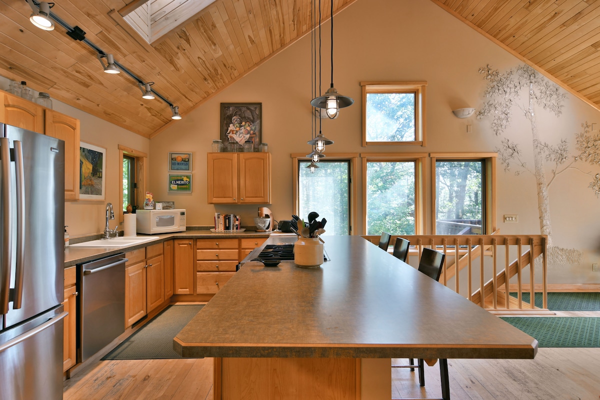 Creative souls love my marvelous studio retreat, a delightful one-room loft-style space featuring tall ceilings, an entire wall of sliding glass doors, kitchenette, piano, and an expansive view of a picturesque barn, pasture, and wooded hills. This amazing, heated, spacious country getaway has no plumbing— it's just a few steps across the yard to the main house guest bathroom. Come create, relax, and renew here! Well-behaved dogs, included in your reservation, must be leashed when outside.