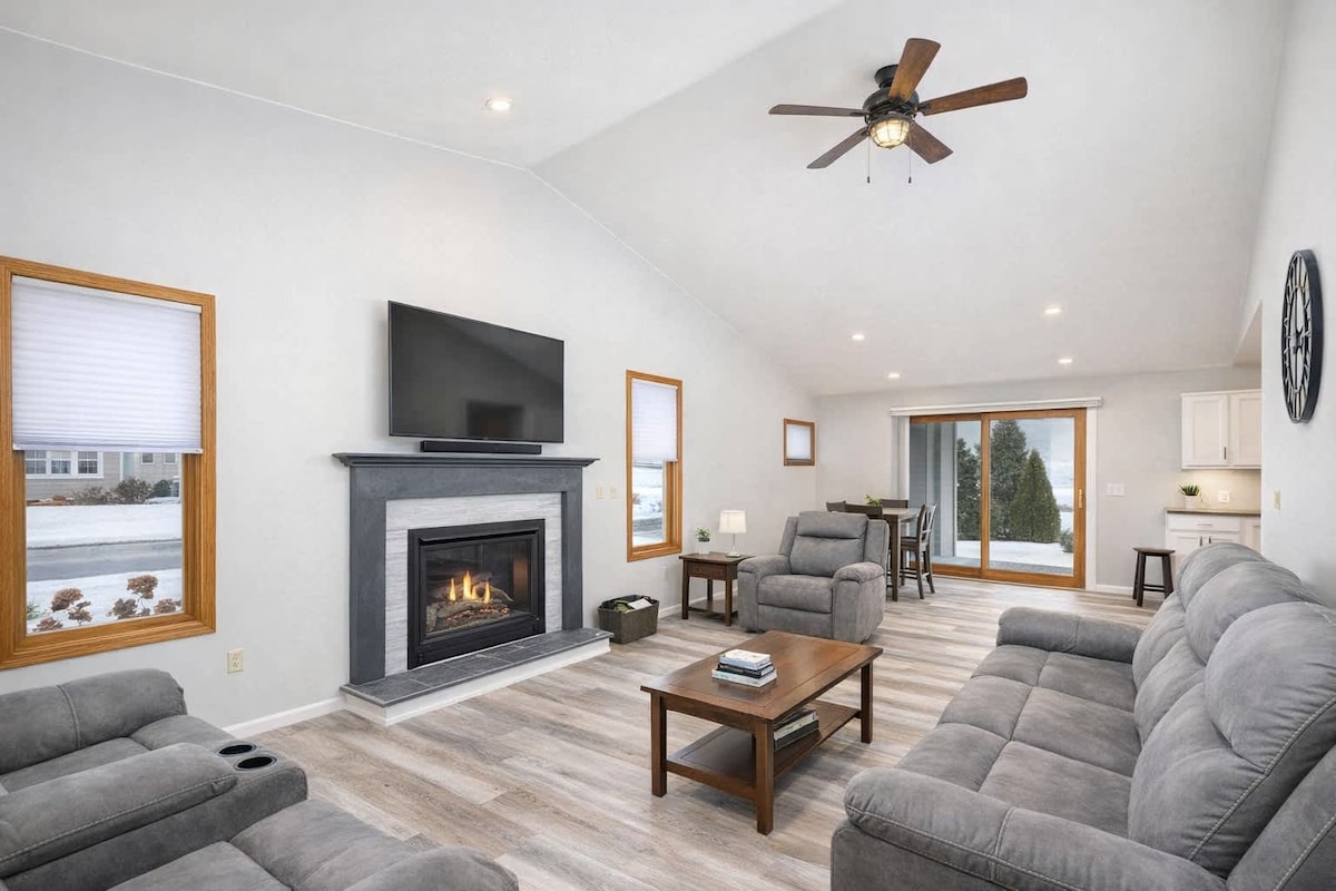Wake up to the sunrise over a peaceful backyard and enjoy your favorite blend on your private balcony. Evenings are perfect by the fire pit under a starry sky. This renovated home has gas stove/oven, microwave, coffee maker, full-size fridge/freezer, in-unit washer & dryer, smart TV, and Wi-Fi - ideal for couples, small families, or traveling professionals. Only 1 mile from I-94 and 20 minutes from Milwaukee, blending quiet comfort with city convenience.