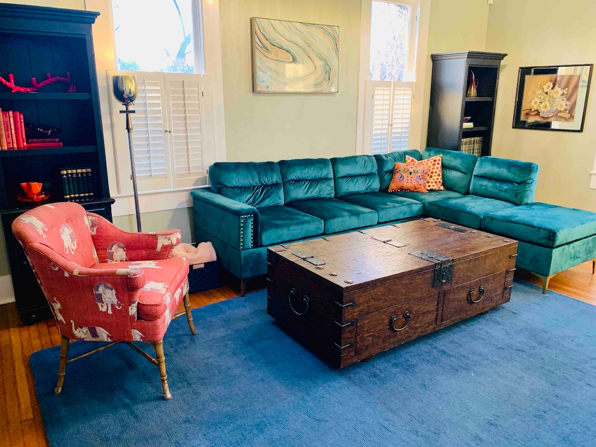 Menekülj el a varázslatos, 1920-as évekbeli Craftsman-bungalónkba San Antonióban! Ebben az 140 négyzetméteres otthonban kényelmesen elfér 5 fő, és külön munkaterülettel, teljesen felszerelt konyhával, valamint egy pavilonnal és grillsütővel felszerelt fantasztikus udvarral rendelkezik. A szálláshely egy csendes utcában található, mindössze 5 perces autóútra a híres RiverWalktól és a nyüzsgő Pearl Districttől. Tökéletes történelmi szálláshely modern kényelmi szolgáltatásokkal családok vagy távolról dolgozók számára.