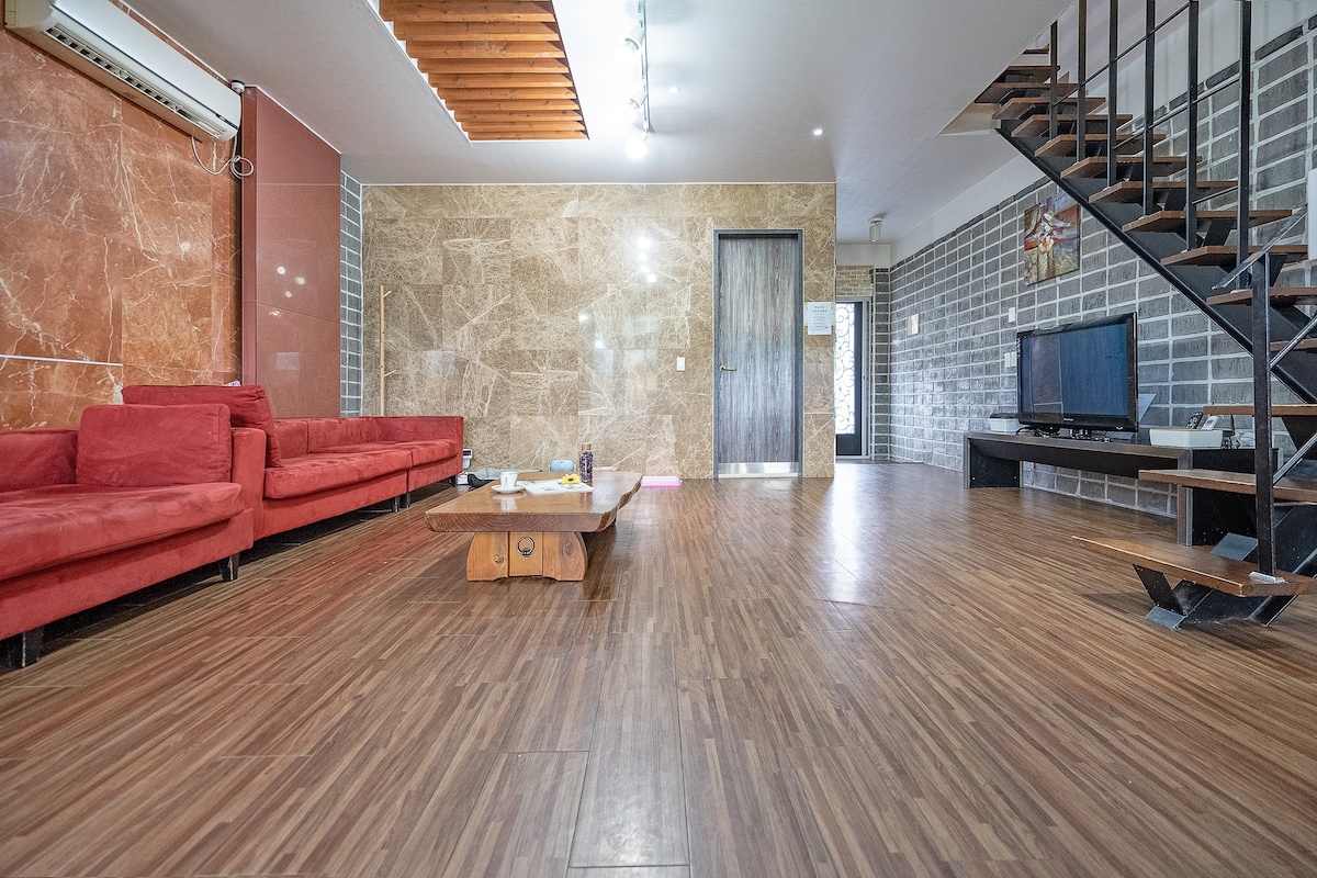 Cheomseongdae House, különálló belső lépcsőház, 246,4 m2, 1. és 2. emeleten 5 szoba, 15 fő, további 28 fő esetén fejenként 20 000 KRW