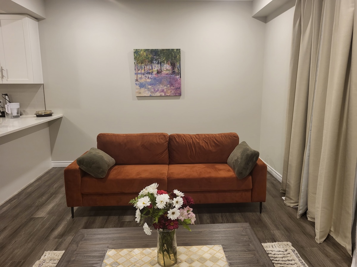Ez a külön bejáratú, otthonos AirBnb legfeljebb 6 főnek biztosít helyet. Főzz, töltsd fel az elektromos járművedet, játssz és nézz filmeket! A lakás tele van, tiszta és stílusos, átgondolt kényelmi szolgáltatásokkal, amelyek kényelmessé és élvezetessé teszik a szálláshelyen eltöltött idődet. Sétálj ösvényekhez, parkokhoz és belvárosi üzletekhez és éttermekhez, vagy merészkedj tovább a Terra Nova Nordic Spa-hoz, Kanada legnagyobb antik bevásárlóközpontjához, a Gunn's Hill Cheese Farmhoz vagy egy kicsit távolabb a Stratfordhoz vagy a Walter's Music Venue-hoz vacsorára és egy előadásra. Rengeteg a látni- és tennivaló!