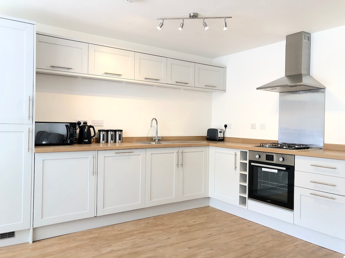 ★Vállalkozók, családok és áthelyezők★ ★Tökéletes a hosszú távú foglalásokhoz ★ 1 hálószobás ingatlan ★ Fizetős parkolás helyben 5-8 £/24 óra ★ 1 King Zip and Link Beds that can be Split into 2 Single Beds suitable for Colleague's, Friends & Families. ★ 1 szoba kétszemélyes ággyal ★ 1 fürdőszoba ★ 1 kanapéágy ★ Liftbe való bejutás ★ Teljesen felszerelt konyha és étkezőasztal ★ Okostévé, Netflix és egyéb streamingplatformok ★ Ingyenes Wi-Fi ★ Ingyenes tea- és kávézóállomás Kaució és személyazonosító okmány szükséges