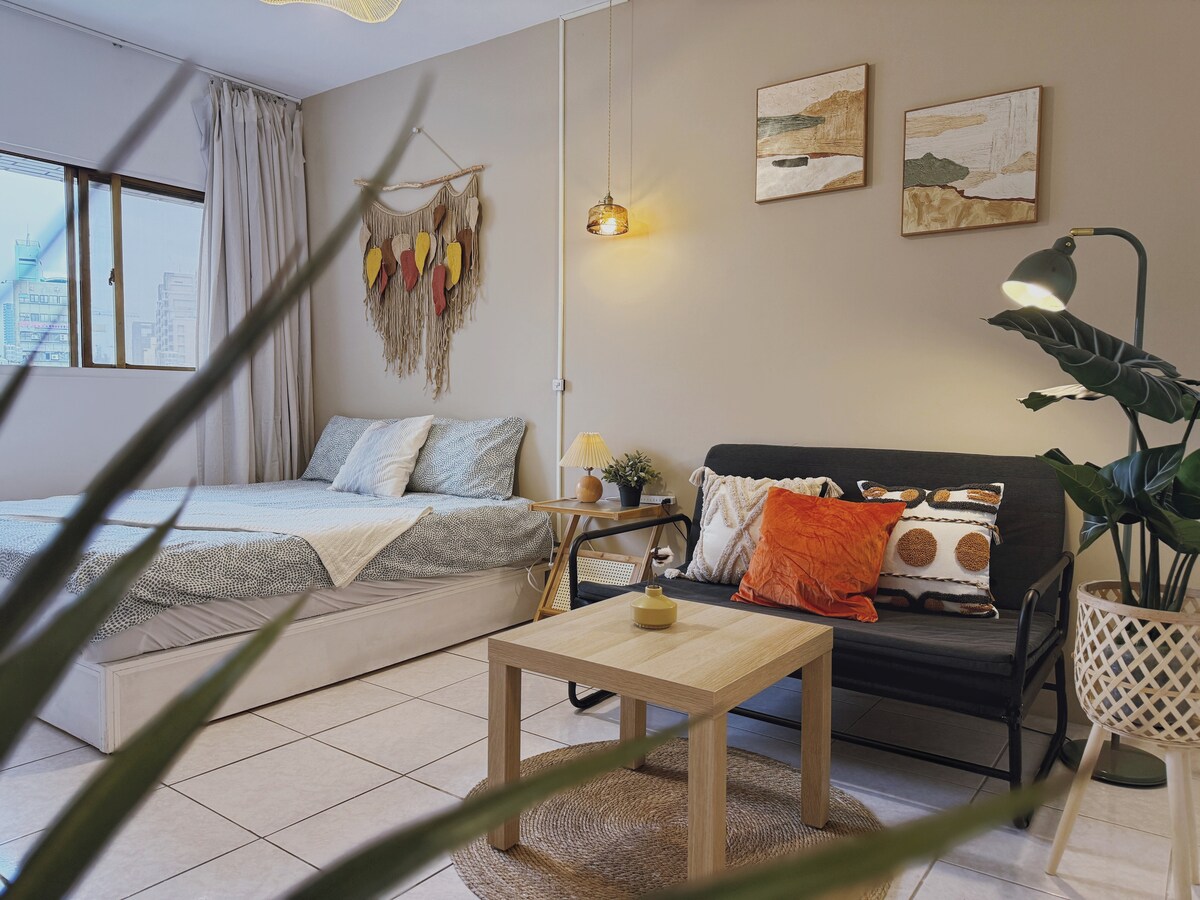 日街寓美 Sun Street. 位於高雄市中心,捷運美麗島站步行3分鐘抵達,步行5分鐘到六合夜市。是一座私人老寓所。我們精心打造的一個舒適愜意的空間:中島設計開放式廚房、AI智控洗乾衣機、涼暖智慧空氣清淨機、雙變頻除濕機、觸控飲水機及智慧音響。讓您盡情體驗高質感的都會區生活,享受城市的美好。適合從世界各地來旅遊、長租的旅客,我們期待為您帶來南國溫暖的美好回憶和體驗。