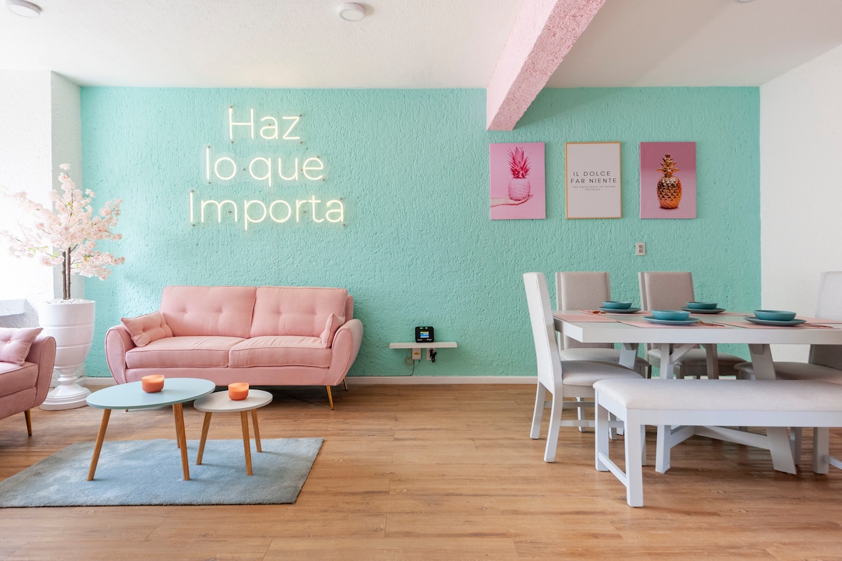 Ismerd meg a divatos Nápolest, amely mindössze néhány lépésre van a WTC-től és a Pepsi Center-től, 7 percnyi autóútra Condesától és Romától, és mindössze 7 mérföldre (11 km) a Benito Juárez nemzetközi repülőtértől (MEX), a GNP stadiontól és az izgalmas Forma-1-es nagydíj helyszínétől. Ez az elegáns, kétszintes lakás saját erkélyrel, kényelmes queen méretű ággyal, kétszemélyes kanapéággyal, 60 hüvelykes okostévével, teljesen felszerelt konyhával és nagy sebességű Wi-Fi-vel rendelkezik. Foglalj most, és élvezd a kifinomult kényelmet Mexikóváros legjobb helyén.