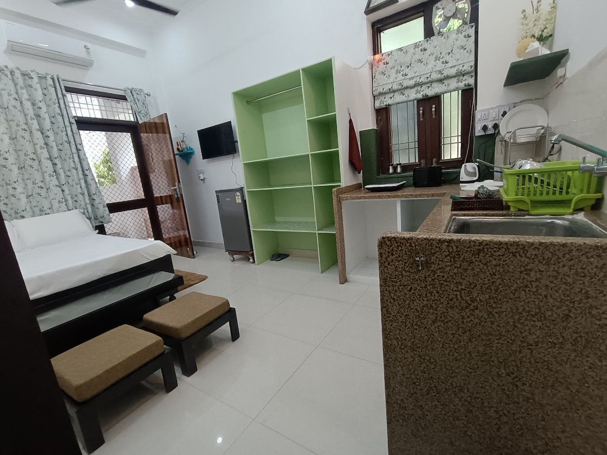 Gyönyörűen berendezett 1RK privát lakás Malviya Nagarban, Jaipurban. Királyméretű ággyal, kétszemélyes kanapéval, 50 hüvelykes okostévével, mellékelt mosdóval, saját kerti társalgóval és teljesen felszerelt konyhával, tűzhellyel, főzőedényekkel, hűtőszekrénnyel és alapvető felszereléssel. Látnivalók Jawahar Circle Garden & Fountain – 5 perc Patrika kapu – 5 perc World Trade Park (WTP) – 4 perc Birla Mandir – 12 perc Albert Hall Múzeum – 20 perc Hawa Mahal – 25 perc Városi palota, Jaipur – 25 perc Amer erőd – 40 perc Jaipuri nemzetközi repülőtér – 7 perc