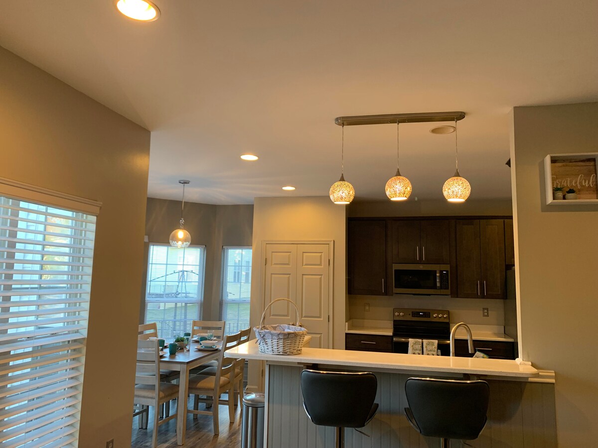 Tágas, 4 hálószobás otthon hátsó udvarral, játékszobával és nagyszerű elhelyezkedéssel! Üdvözlünk az otthonodban, távol az otthonodtól! Ez a kényelmes és tágas ház mindent kínál, amire szükséged lehet a pihentető tartózkodáshoz. 4 hangulatos hálószoba, 2 teljes fürdőszoba, egy teljesen felszerelt konyha, egy barátságos nappali, amely kanapéággyá alakul, valamint egy szórakoztató alagsor biliárdasztallal, amely tökéletes a pihenéshez vagy a családdal és a barátokkal töltött időhöz. Élvezd a hátsó udvart grillezővel a szabadtéri étkezésekhez és a minőségi időhöz.