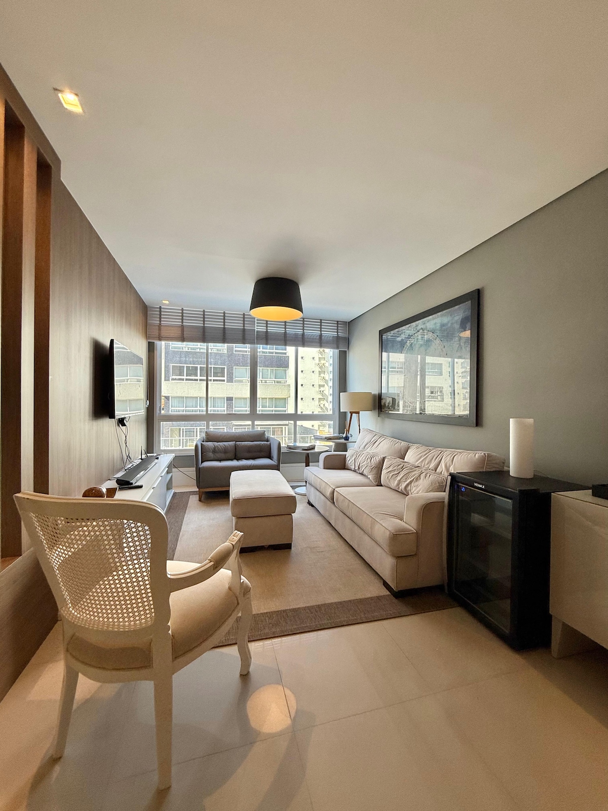 Kiváló társasházi lakás teljes infrastruktúrával (normál és fűtött úszómedence, közös edzőterem, száraz és nedves szauna, szépségszalon, játékkönyvtár, focipálya, teniszpálya/strand teniszpálya). Szabadidős terület külső grillezővel és teljes társasházi biztonsággal. Lakás 100% -ban teljes, teljesen új elektronikai eszközök, sörfőzde, airfryer, kávéfőző, szendvicssütő, tévé. A Condomínio vízparti támaszpontja fürdőszobával, székekkel, zuhanyzóval és őrrel rendelkezik - napsütés