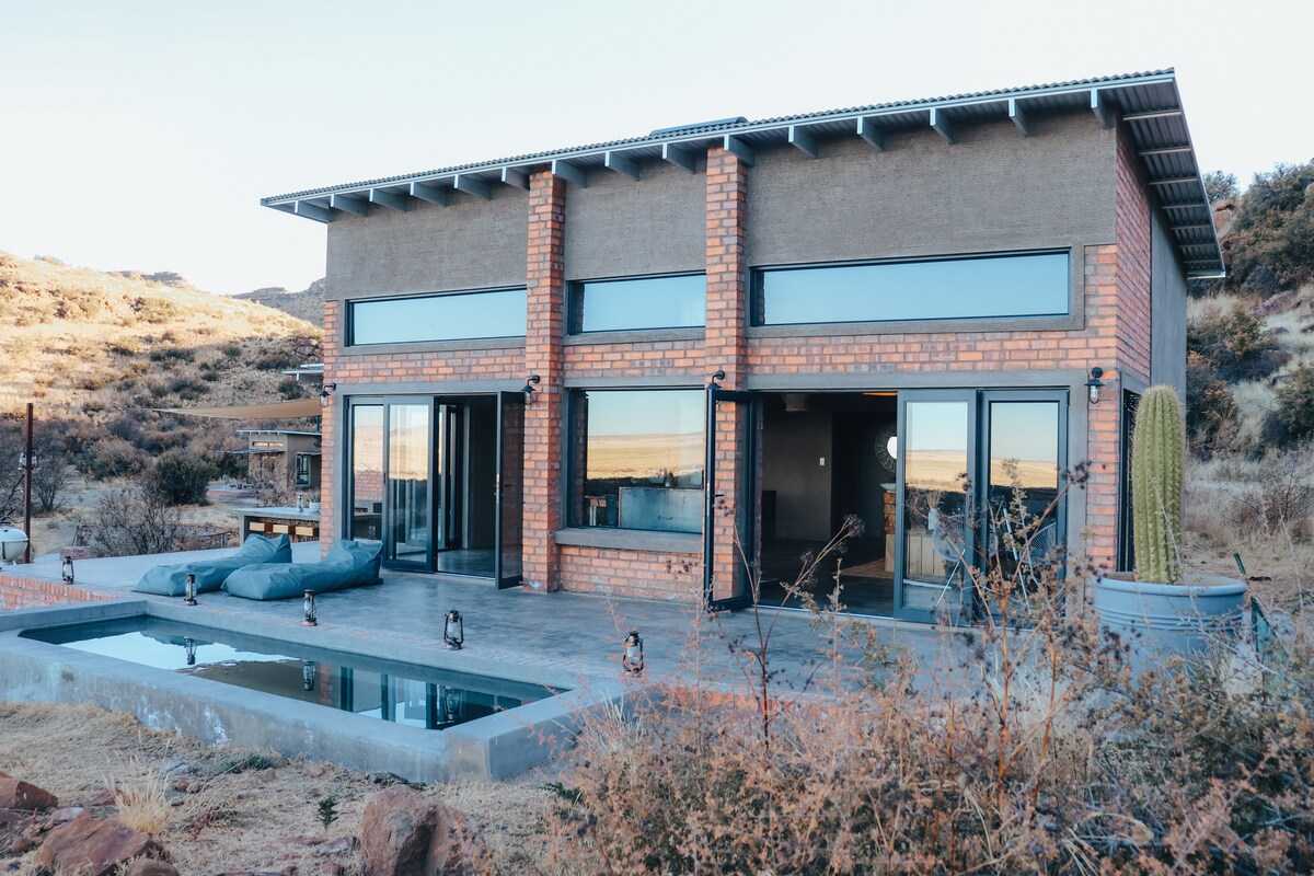 BRAND NEW Eco Karoo Lodge which is nestled at the foot of majestic Joostenberg mountains to the west and endless great plains to the east, at the Northern tip of the Great Karoo. Eco Karoo Mountain Lodge is situated in the middle of the 4200 hectares Farm Knoffelfontein with it’s unique vastness, peace and tranquility. Eco Karoo Lodge is 100% off-the-grid, offering solar power and freshly pumped aquafir water. The Eco Karoo Mountain Lodge has a beauty of its own waiting for you to experience.