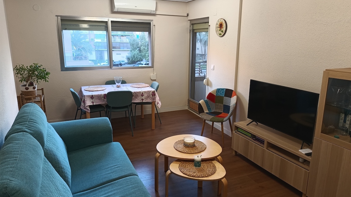 Felújított lakás 3 hálószobával (2 kétágyas és 1 egyágyas) és erkéllyel egy lifttel felszerelt épületben Valencia központja és a repülőtér közelében. 2 légkondicionálóval rendelkezik. Rendelkezik WI-FI-VEL. Minden szükséges kellék megvan a főzéshez. Hajszárítóval, ruhákhoz való vasalóval és deszkával, törölközőkkel, lepedőkkel stb. Minden szükséges kényelmi szolgáltatás a rendelkezésedre áll, például szupermarketek, üzletek, pékségek stb.