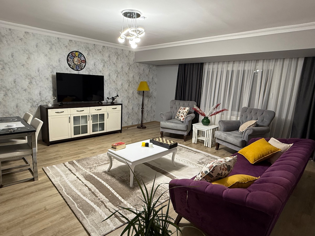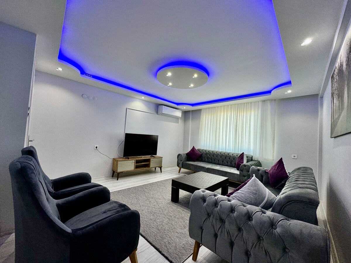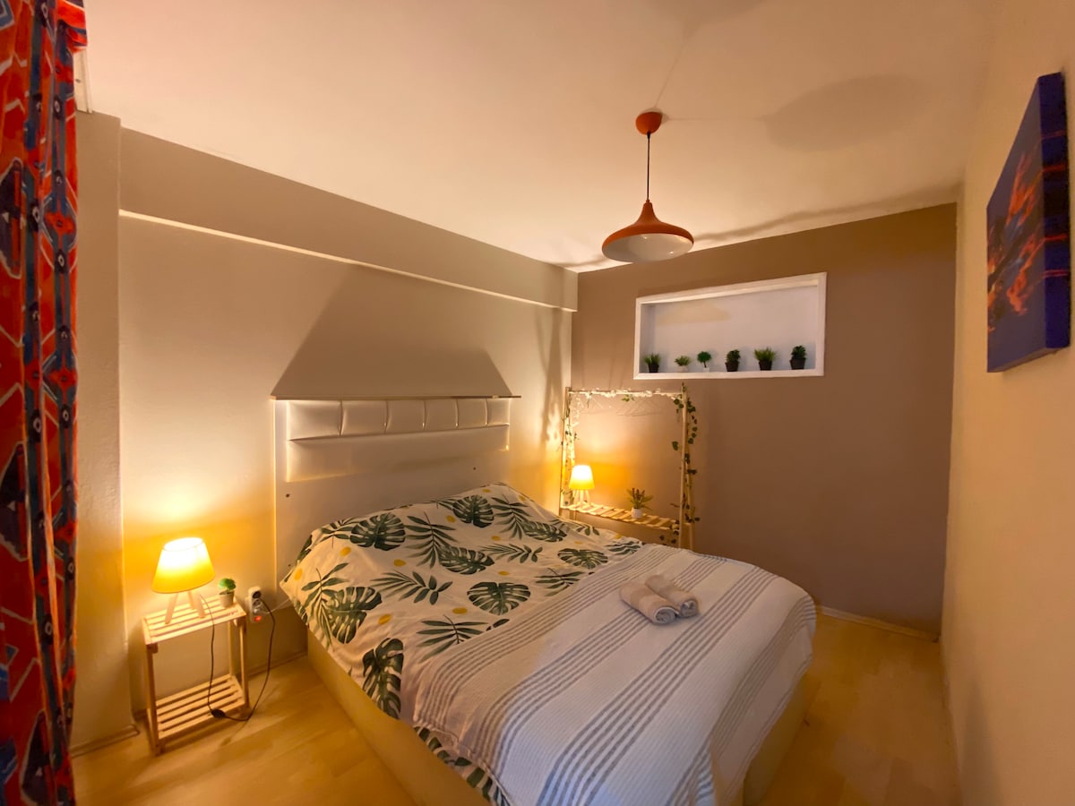 Ez a stílusos szálláshely tökéletes csoportos utazásokhoz. Élvezheted Izmirint egy egyszerű helyen. Ez egy olyan lakás, ahol pihenhetsz. A házunk földgázzal működik. Van légkondicionáló. Otthon fogod érezni magad. Van mosógép, vasaló, vasalódeszka,hajszárító. Autóval 5 percre van a városközponttól és Bornovától. A buszmegállóktól 15 perc alatt elérhető a Karsiyaka, az Alsancak és a Bornova metró. Kényelmesebb lesz, ha autóval érkezel.