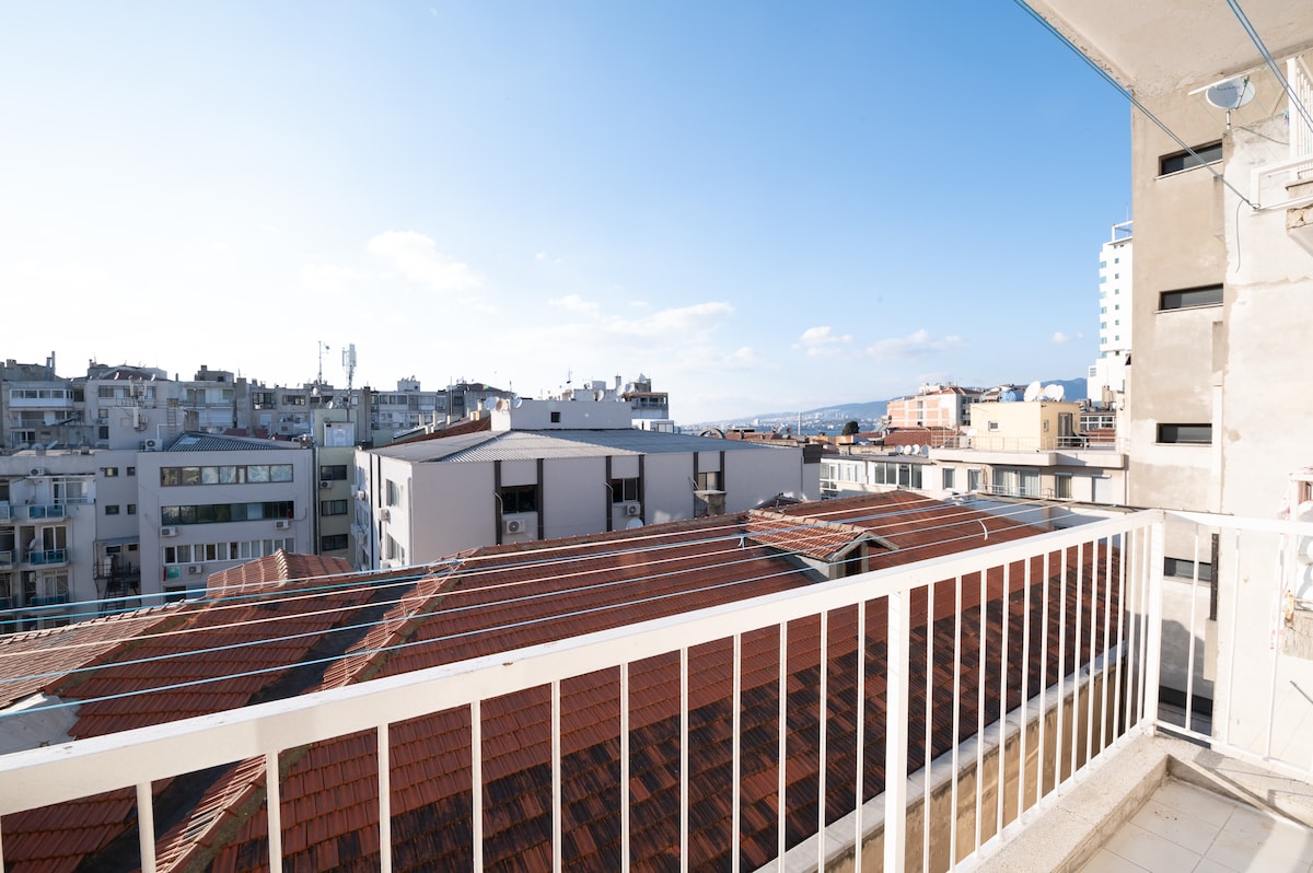 Élvezd az Izmir-öböl látványát egy csodálatos társalgóból és erkélyről. Hangulatos stúdiónk tökéletes helyen, İzmir központjában található, mindössze 5 perces sétára a híres óvárostól és az összes főbb tömegközlekedési lehetőségtől (metró, busz és villamos). A házunk Izmir központjában található. 5 perc sétára van a híres óvárostól és az összes tömegközlekedési szolgáltatástól(metró, busz és villamos). A ház közelében található szupermarketek és élelmiszerboltok is találhatók.