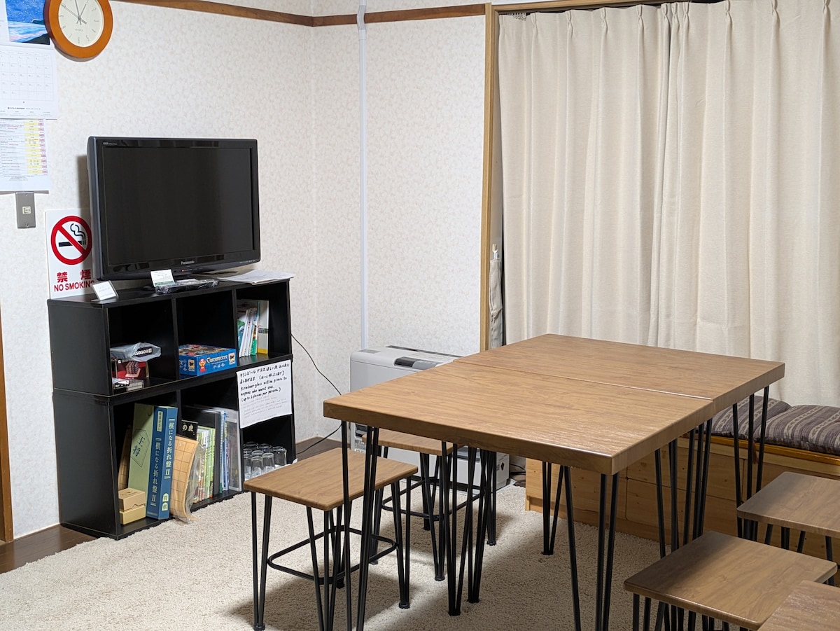 Átlagos értékelés: 5/4,96, 68 véleményMaximum 10 fő, a központban található „JIHEI” épület, ingyenes parkoló 2 autó számára, tágas nappali és étkező az első emeleten, 2 japán és 2 nyugati szoba a második emeleten