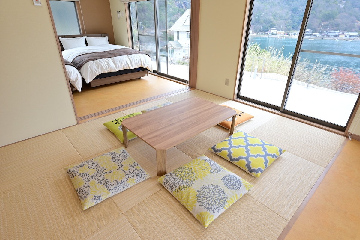 Egy ház Hirabu-cho partvidékén, a Jamagucsi prefektúrában, kilátással a Seto-tengerre.A nagy ablakokból a nyugodt tengerre és a számos sziget szépségére, a belső terekből pedig a csodálatos naplementére nyílik kilátás, amelyet a 100 legjobb naplementés kilátás közé választottak.A csendes és nyugodt hely tökéletes a mindennapi fáradtságból való kikapcsolódásra.Internetkapcsolat áll rendelkezésre, így ideális hosszú távú foglalásokhoz és távmunkához.Sétatávolságra van egy strand, és élvezheted a sétákat és a horgászatot a tengerparton.Pároknak, családoknak és a környékre tett kirándulások kiindulópontjaként ajánlott.Tapasztald meg a rendkívüli gyógyulást és a kellemes tengeri szellőt ebben a különleges helyen.