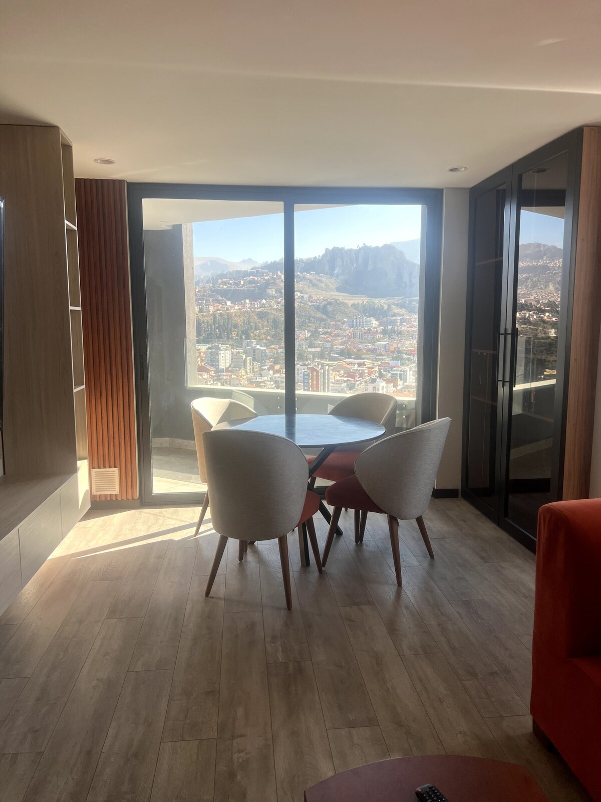 Vadonatúj, magasépületben található lakás a 17. emeleten a város egyik legbiztonságosabb környékén. Az épület mindkét oldalán lenyűgöző kilátás nyílik, így egész nap természetes fényt élvezhetsz, és lélegzetelállító kilátást nyílik a városra és a horizontra. Dél-La Paz nyüzsgő, gyalogosan bejárható szívében található, csak pár lépésre a bájos kávézóktól, pékségektől, drogériáktól, üzletektől, bankoktól és minden mástól, amire szükséged van. A belső terek a modern dizájnt és a kényelmet ötvözik, visszafogott luxussal körülvéve