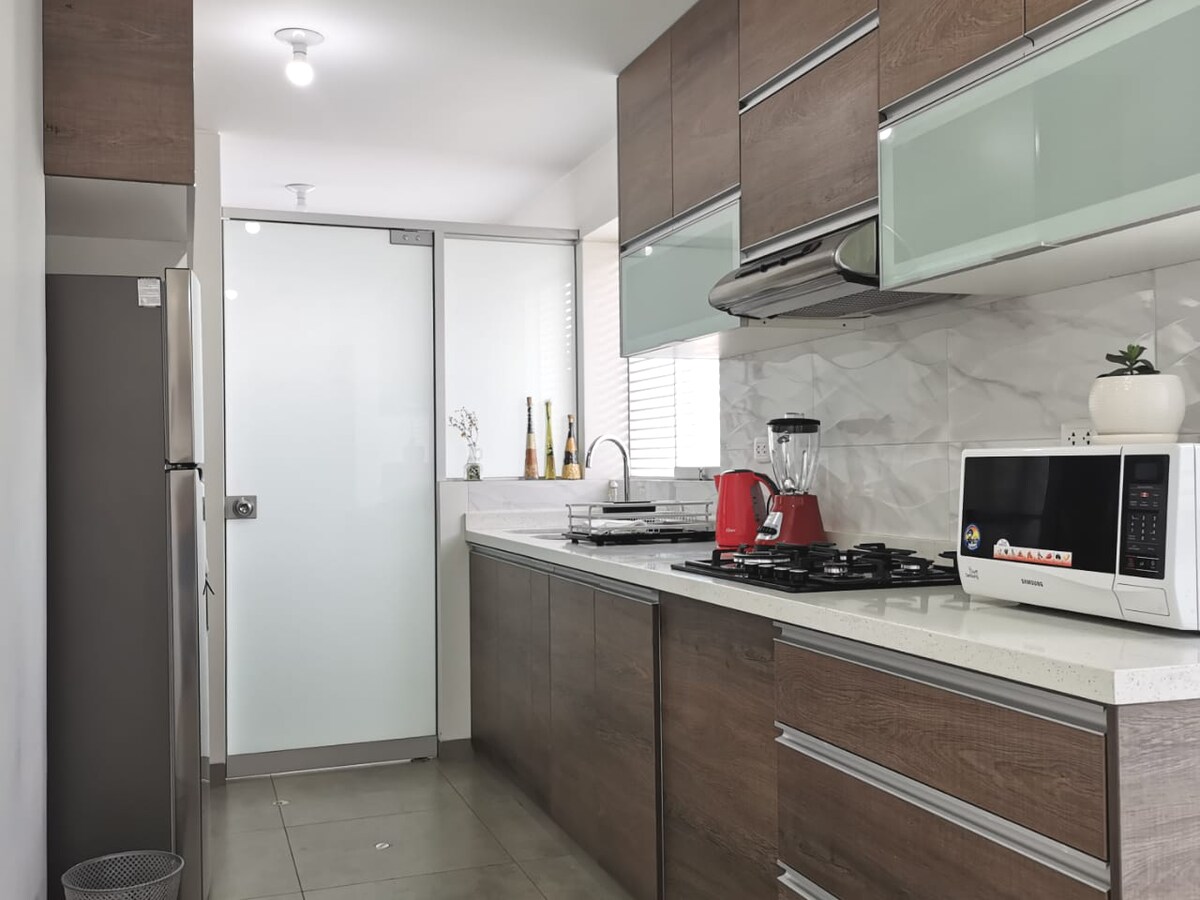 Üdvözlünk az otthonodban, távol az otthonodtól Arequipában! Solare 15 ☀️🌅 Elegáns és modern lakásunkat berendeztük, hogy otthon érezd magad. Lenyűgöző kilátás nyílik a városra, a 15. emeleten található, tökéletes a naplemente élvezetéhez. Alameda Salaverryben, Mirafloresban található, 10 percre a belvárostól. Van egy queen méretű ágyunk és egy 1,5 négyzetméteres ágyunk, két fürdőszobával, egy étkezővel, egy teljes konyhával és egy mosógéppel.