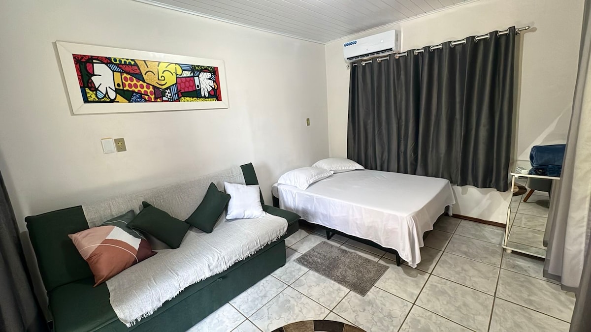 O espaço é iluminado e totalmente equipado. A cozinha possui todos os utensílios necessários, geladeira, fogão, micro-ondas, air fryer, panelas e utensílios para quem gosta de preparar suas próprias refeições. Os dois quartos contam com ar condicionado e roupas de cama. O banheiro conta com toalhas de banho, toalha de rosto. O espaço conta com garagem em anexo a Vidraçaria Crestani. É perto de mercado, padaria e farmácia. Tudo para que sua experiência seja prática e agradável