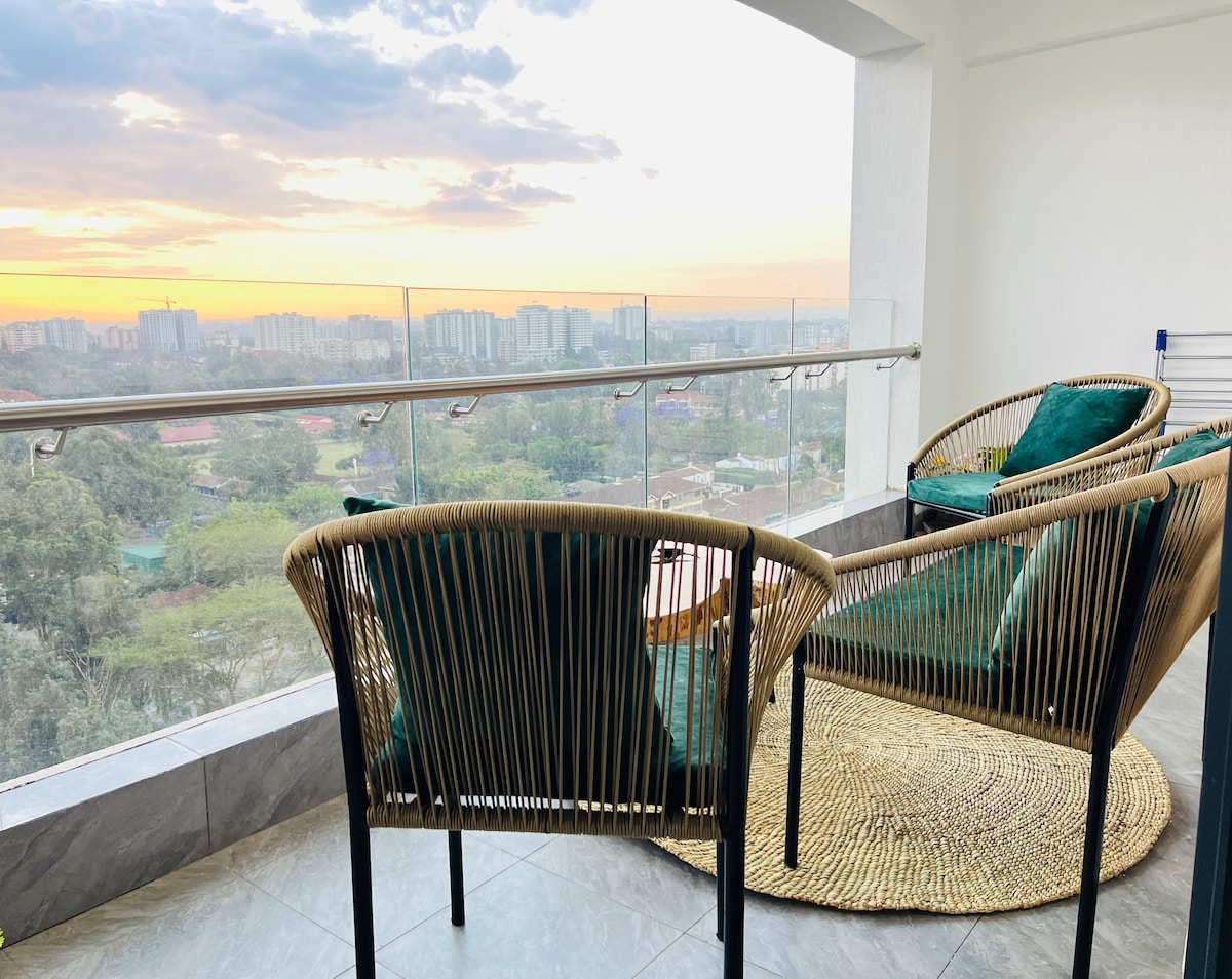 Üdvözlünk a 17. emeleti bohém otthonban Kilimaniban. Íme, mi van az étlapon: 🌅17. emeleti lélegzetelállító kilátás a naplementére 🛒🛍️sétatávolságra a Yaya Centertől 🛋️ saját erkély kényelme 🏋🏾♀️Teljesen felszerelt edzőterem 🏌🏽♂️⛳️beltéri golf 🏓Pingpong 🚀Gyors WI-FI 🍿Netflix 💼Munkaterület 🧑🏾🍳Török étterem a helyszínen 💆🏾♂️💆♀️ Fürdő- és masszázsszolgáltatások a tetőn 🎲 📚 Könyvek és játékok 🎨🪴Eredeti műalkotások és növények ☕️Kávéfőző 🍳teljesen felszerelt konyha 🛌Hangulatos chropedic matrac 🧹Takarítási szolgáltatások a kényelmedért, és egyebek…