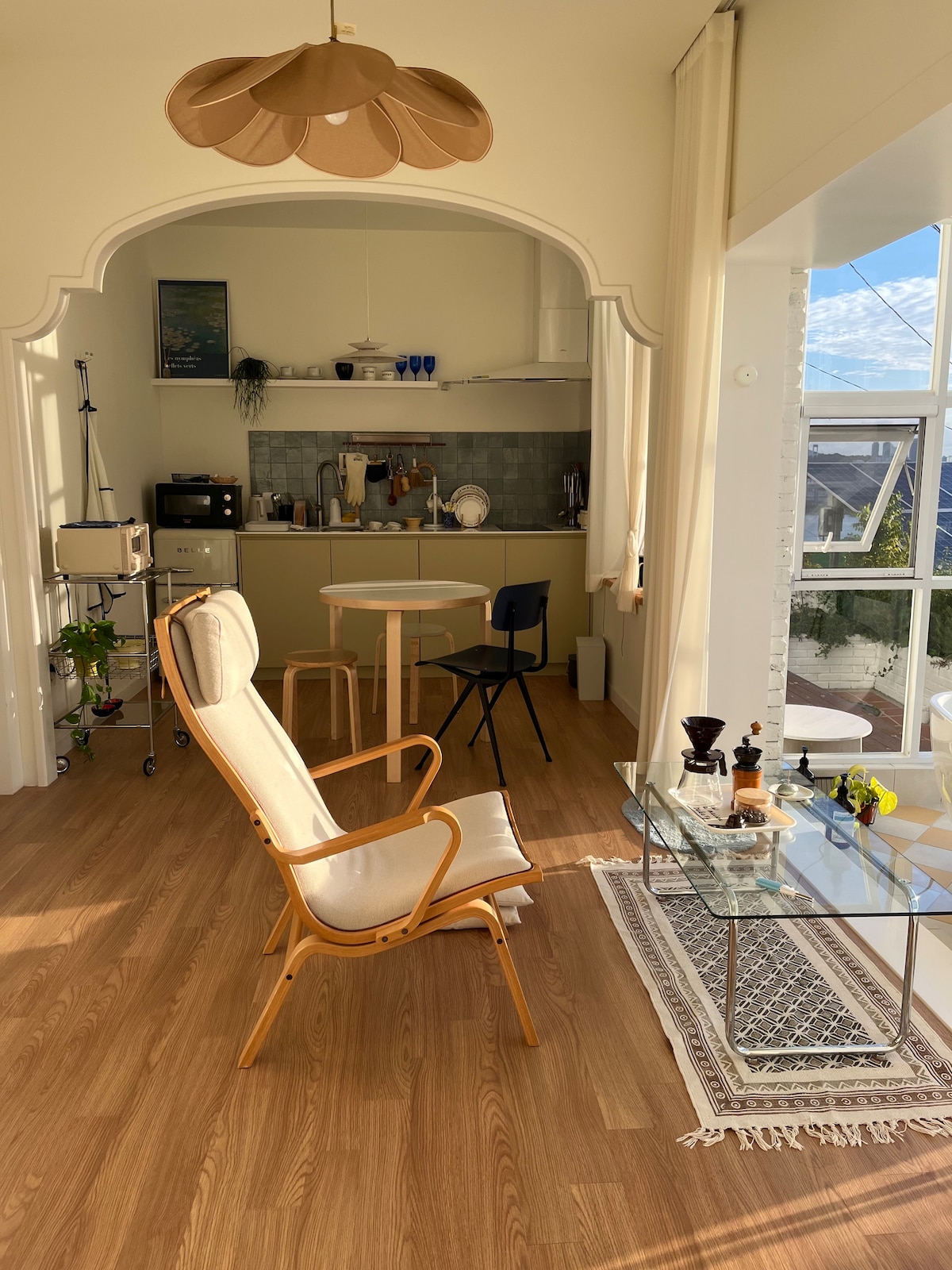 Ezt a falut a menekültek hozták létre a koreai háború alatt. a déli tenger a falu előtti szikla alatt terül el. Ez egy nagyon régi falu a városban, de saját tájjal és egyedi hangulattal rendelkezik. A kívülállók ezt a falut „Koreai Santorininek” nevezik. Az apósom akkoriban egyedül építette ezt a házat, és a férjemnek sok emléke van erről a házról gyerekkorában. Reméljük, hogy ez a ház kellemes pihenőhelyet jelent nektek.