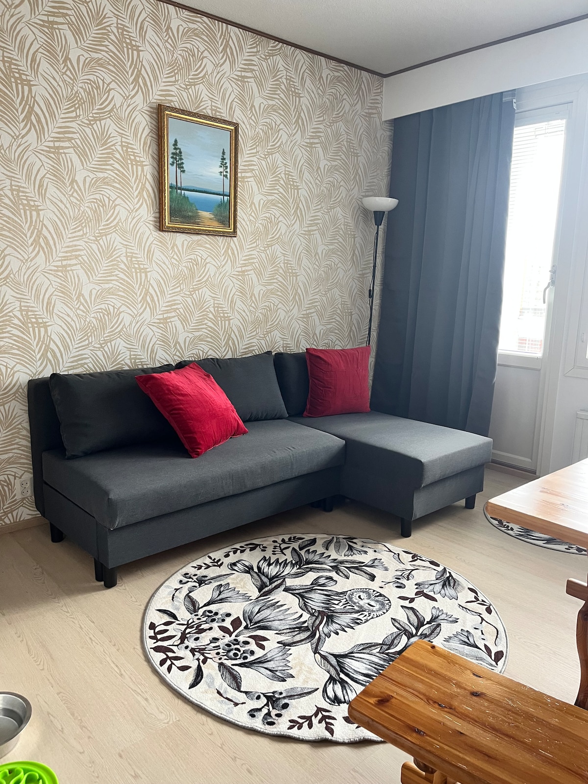 Kultúra, fitnesz és étkezde a küszöbről, a városközpontban. Mit szeretnél ma csinálni? *Templom 400 m * Kulturális központ 400 m (felújítás alatt) * Olvi Hall and the stunning brewery museum (entry fee € 0 by the way) 440m *Market Square 130m *bevásárlóközpont 30m * 160m sípályák *Luuniemi Event Area (Oluset, Runni Rock) 240m *teniszpályák 1000m *minigolf 460m *pub 300m *strand 250m * a közelben található edzőterem 250m *Nonstop edzőterem 400m A nappaliban szükség esetén egy közbenső függöny található. 2.
