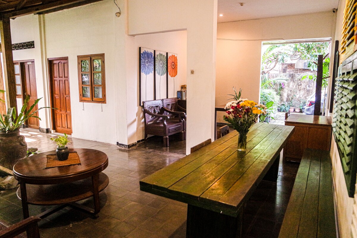 Egy kis bungaló a régi jávai ház tíkfájából, amely egy faluban található, 20 percre a városközponttól. A bungaló a „Rumah Jambon Village House” hátsó udvarában található, csendes környezetben, és tökéletes azok számára, akik írni vagy olvasni szeretnének, vagy csak menekülni szeretnének a hektikus zsúfolt rutinból. A vendégek rizsföldeken és öntözőcsatornákon keresztül sétálhatnak a faluban. A bungalóhoz tartozik egy fürdőszoba forró zuhanyzóval, légkondicionálóval, terasszal és kerttel.