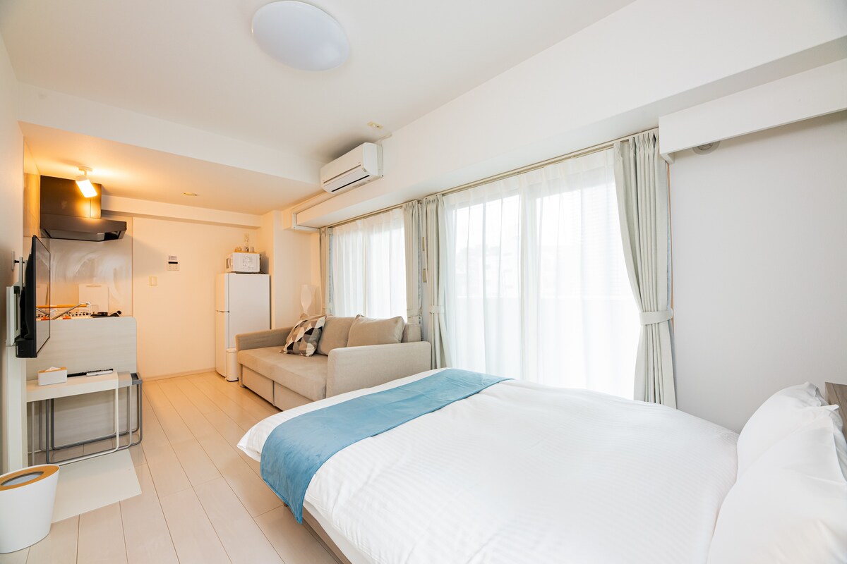 Tiszta és hangulatos egy szobás lakás egy nőnek, kényelmes helyen, mindössze 1 percre a metrótól és a buszmegállótól. 24 órás üzletek vannak a közelben. A szobában főzőedények, rizsfőző és egy franciaágy méretű Sealy ágy található a kényelmes alváshoz. Az épületben 3 mosó-szárítógép is található. Évente legfeljebb 180 napig lehet itt megszállni, ezért érdemes korán foglalni. Ez minden áprilisban visszaáll. Frissített árak a minőség megőrzése érdekében: 2026-tól éjszakánként 5500 jen, a japán infláció miatt enyhe emelkedés lehetséges.