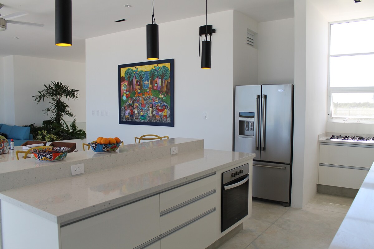Precioso Apartamento con 2 recámaras! Nuevo.Muy cómodo. Equipado con lo necesario para una placentera estancia. Solo necesitas llevar tu ropa. Excelente ubicación. La playa está a 40 metros. A 4 calles del centro de Chicxulub! No necesitas vehículo. En el centro encuentras mercado, farmacia, lavandería, cajero automático. Restaurantes, heladerías, distracciones. Tiendas de abarrotes.