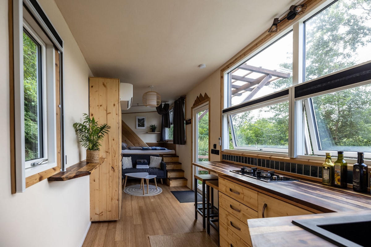 Kézzel készített miniház két személy számára. Közvetlenül a tó partján, nagy terasszal és szaunával. A ház ökológiai anyagokból épült, és szeretettel berendezett, tömörfa bútorokkal. Kétszemélyes ággyal, 220 x 160-as ággyal, kanapéval, teljesen felszerelt konyhával és zuhanyzós fürdőszobával és száraz vécével rendelkezik. A ház könnyen megközelíthető vonattal, a Hämelerwald vasútállomás mindössze 15 perces sétával elérhető.