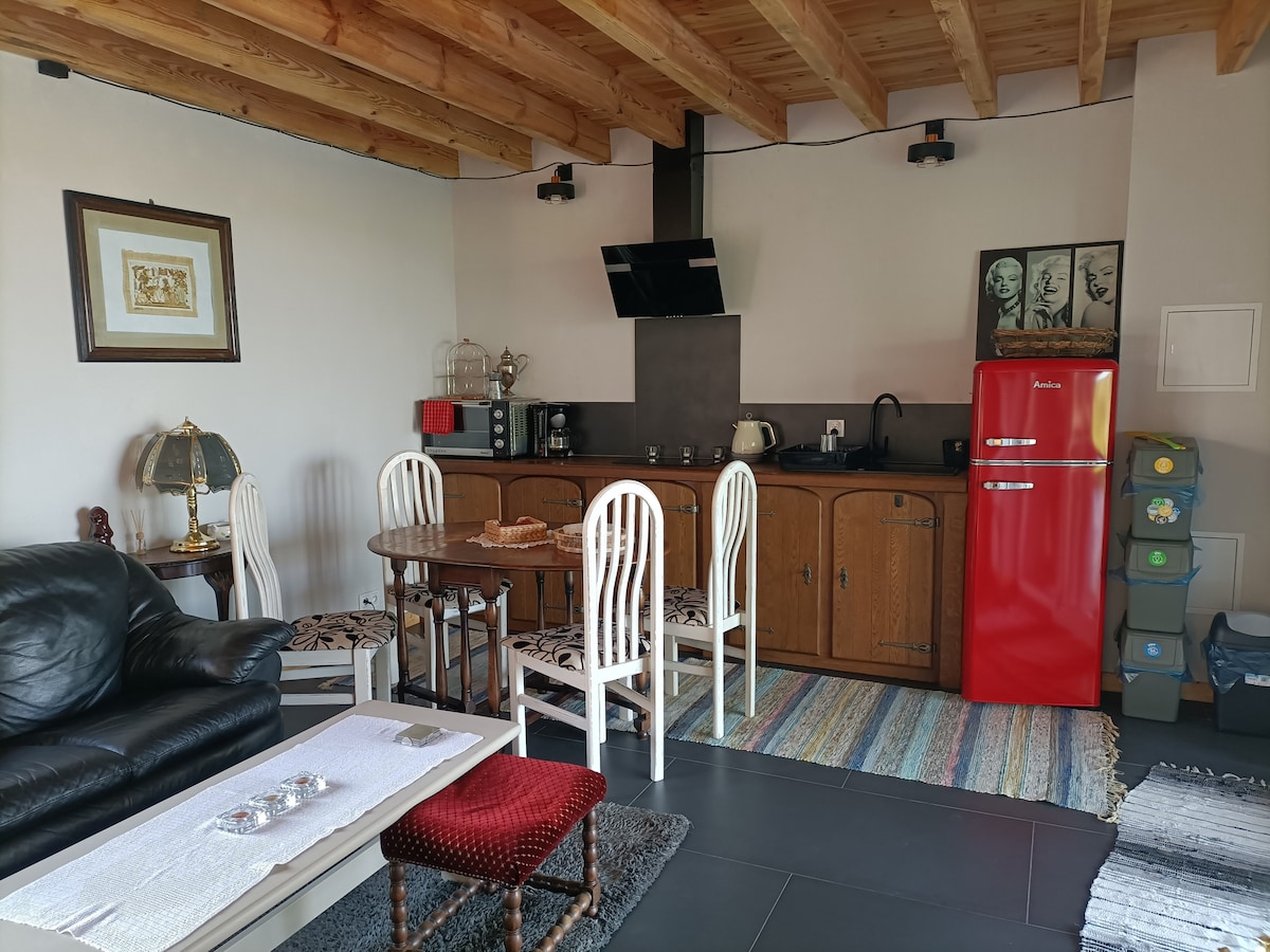 Dom z 1946r. (200 m²) znajduje się w małej, spokojnej wsi. Zachowany rustykalny, etniczny wystrój. 5 sypialni, 3 łazienki i przestronna weranda z widokiem na sad zapewniają pełen relaks i komfortowy pobyt 16 osobom. Duża w pełni wyposażona kuchnia utrzymana w wiejskim stylu jest równocześnie wyposażona we wszelkie nowoczesne sprzęty. Dom ma centralne ogrzewanie oraz klimatyczne piece kaflowe. Teren ogrodzony, parking, taras pergolami, z miejsce na ognisko, duży sad i boisko do siatkówki.