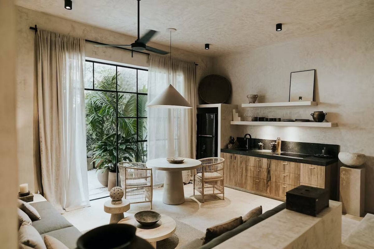 Seky loftlakás, nagy hely, kényelem és maximális magánélet. Lépj ki a rutinból, és merülj el ennek a nyitott terű és kényelmes loftlakásnak a csodálatos részébe. Kívül egy hangulatos ház, belül egy egyedi tér, tele művészi kifejezésekkel és kényelemmel. Az erkélyen található jacuzzi ízletes és nagyon privát részlet. Minden bejelentkezés előtt a villát teljesen fertőtlenítettük, biztosítva a mikroorganizmusok higiéniáját és megsemmisítését, beleértve a Covid-19-et is. Nagy erősségű loftlakás, ahol az egyes helyiségeket a funkcionalitás, a dekoráció, a színek, a bútorok és a lakberendezési kiegészítők határozzák meg. A nagyon magas, karibi stílusban készített belmagassággal, nagy ablakokkal, és a privát szféra teljes mértékben biztosítva van. Minden teret csak a vendégek használhatnak Személyre szabott szolgáltatást biztosítunk az érkezéshez, valamint a biztonsághoz és a figyelemhez a nap 24 órájában. Tulum szívében található, egy mexikói falu igazi ízével körülvéve. A terület nagyon csendes és könnyen megközelíthető. Néhány lépésre vannak kis éttermek, sőt még egy gyógyszertár és kisbolt is OXXO. Biztonsággal és 24 órás segítséggel. A 200 méteres magasságon kívül Tulum központjában található divatos utcát is megtalálod különböző éttermekkel, bárokkal, üzletekkel és mindenféle szolgáltatással. Azonnali hozzáférés a taxikhoz (nagyon olcsó) és a kerékpárkölcsönzéshez. A tetőtér előtt leparkolhatod a járművedet. Repülőtéri transzfert kínálunk - loft, kerékpárbérlés, autóbérlés, otthoni szakács és masszázs. Kisállatokat is fogadunk, a vendég felelőssége mellett