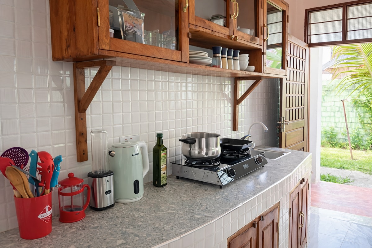 Kényelmes, légkondicionált lakás 100 méterre a strandtól. Konyhasarok, gyors Wi-Fi, békés hely, házi készítésű ételek és transzfer. Kényelmes emeleti lakás légkondicionálóval, saját fürdőszobával és teljesen felszerelt konyhasarokkal. Tökéletes azoknak a pároknak, akik magánéletre, kényelemre és nyugodt légkörre vágynak. Élvezd a természetes fényt, a gyors Wi-Fi-t és a csendes helyet, amely pihentető és kényelmes szállást kínál Jambianiban, meleg helyi vendégszeretet mellett.