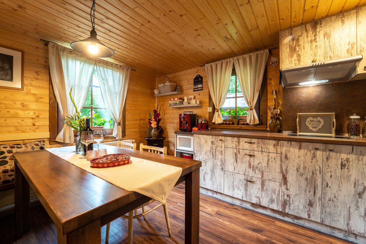 Romantikus hegyi kunyhó saját pezsgőfürdővel és finn szaunával a Szlovák Paradicsom Nemzeti Park szívében, a Baglyos-szikla alatt. A víkendház a legjobb helyen található, a túraútvonalak és a Hornád folyó közelében. Felfedezheted a völgyeken és kanyonokon átvezető túra- és kerékpárutakat a vízesések közelében, kipróbálhatod a létrás útvonalakat, vagy elindulhatsz a Tomasovský vyhládra, ahonnan nagyszerű kilátás nyílik a Magas-Tátra csúcsaira. Ahogy leszáll az este, térjetek vissza a víkendházba, merüljetek el a pezsgőfürdőben, és élvezzétek a csendes pillanatokat a hegyek között.