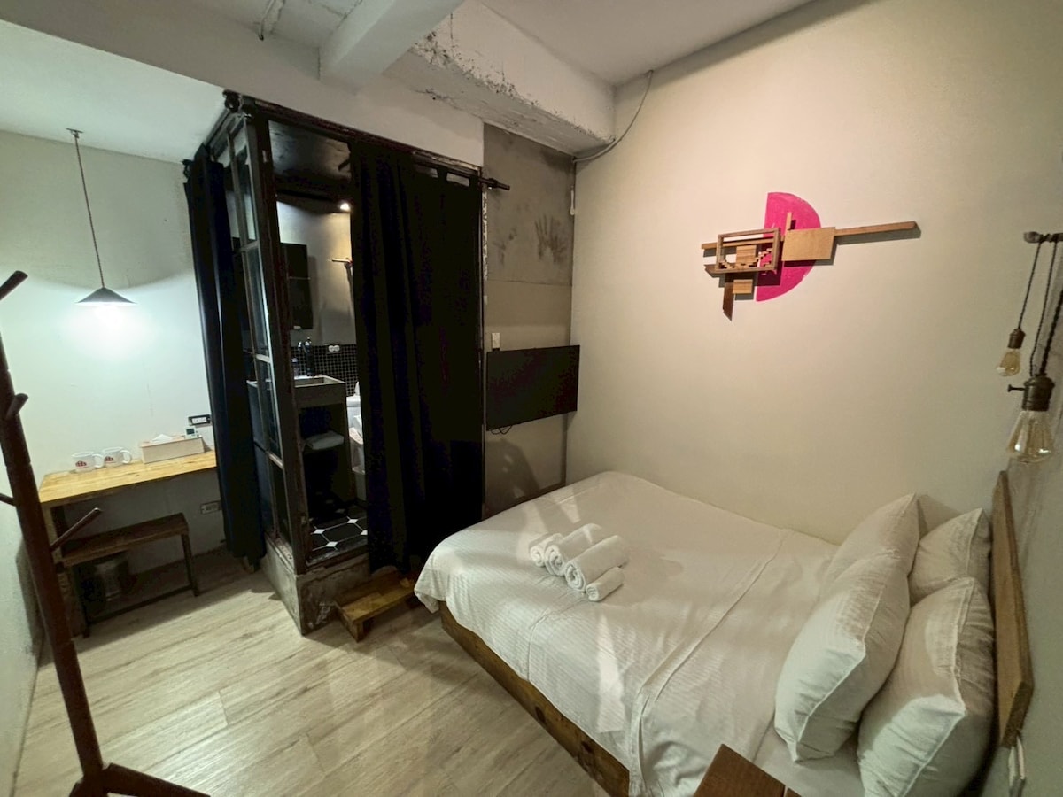 Amikor Tajpejben jársz, válaszd a Taipei City Luxe King – New, 3 Min to MRT K1 szálláshelyet, és élvezd a luxust és autentikus hangulatot a híres Yongkang negyed szívében. Ez a szoba egy ritkán látott, 210 cm x 190 cm-es császári ággyal rendelkezik, amely páratlan tágasságot és kényelmet kínál – tökéletes azoknak az utazóknak, akik prémium élményt keresnek. A szoba dizájnja ötvözi a modern művészetet a kulturális bájjal, tükrözve a Yongkang utca egyedi kreatív esszenciáját.