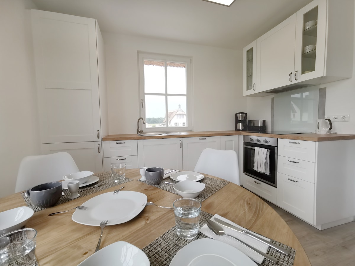 Komfortabeles Ferienapartment, direkt in Strandnähe (3 Minuten zu Fuß). Reinkommen und wohlfühlen! Gerade alles frisch renoviert und neu eingerichtet für zwei Erwachsene und ein weiteres Schlafsofa für zwei kleine Kinder oder einen Teenager. Küche voll ausgestattet mit Kaffeevollautomat, Gefrierschrank und und und (schaut unter weitere Infos die ganze Ausstattungsliste). Im Wohn- und Schlafzimmer ist guter Schlaf auf den Boxspringbetten vorbestimmt oder entspannen in der Regendusche.