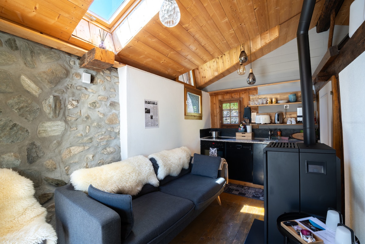 Kandalló, ahol tüzet RAKHATSZ kívülről!...vagy bent! A hegy nyugalma, a síparadicsomok közelsége, az élénk és természetes lakóhely eredetisége, a kerti terasz és a legelők, az érintetlen természet és a fenséges kilátás. A házikót 2011-ben alakították át egy tipikus Valais-i pajtából, amely egy kő alagsorban található őrült falakból származik.