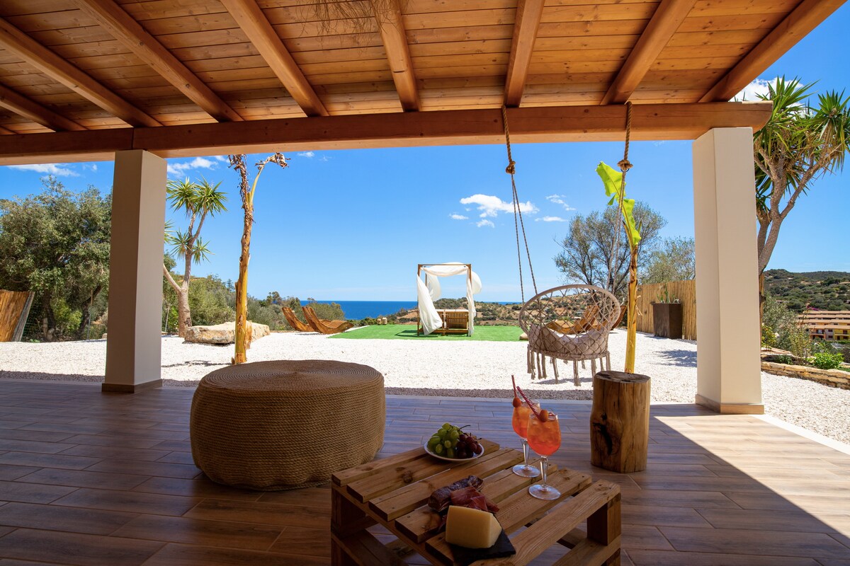 Villino Serena, tágas és kilátással a tengerre.