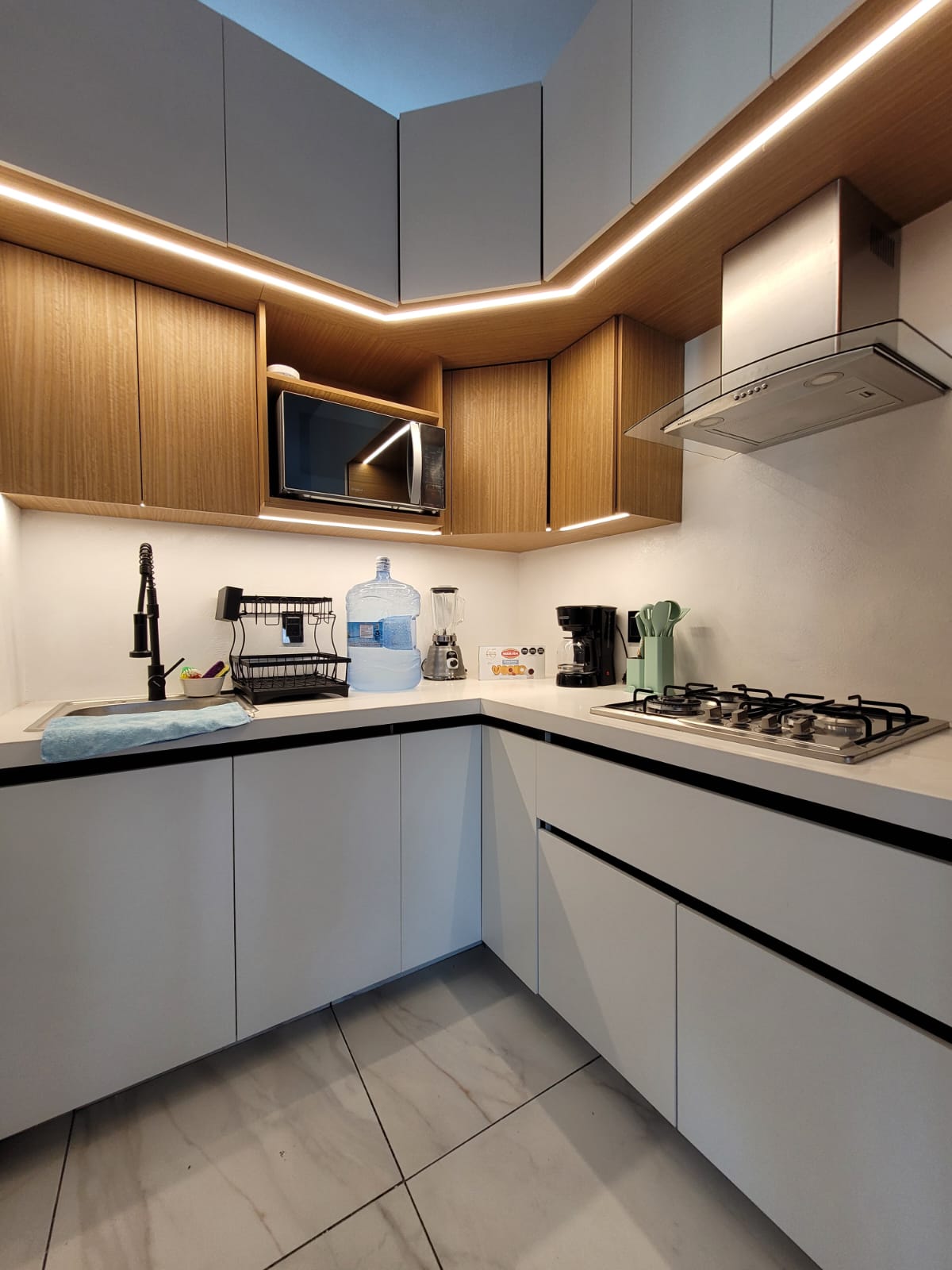 Departamento bien ubicado para hasta 4 personas, cuenta con todo lo necesario, SÍ facturamos Es una construcción nueva, el proyecto va empezando, la ubicación está excelente pues a una cuadra está la "Pista vieja" o Av. Lázaro Cárdenas, a 5 min de la Glorieta de la Latino., hay un oxxo a cuadra y media del lugar, fácil de acceder en vehiculo o transporte público Todo es nuevo, siéntete listo para estrenar este nuevo espacio construido para ti Para acceder es necesario subir escaleras