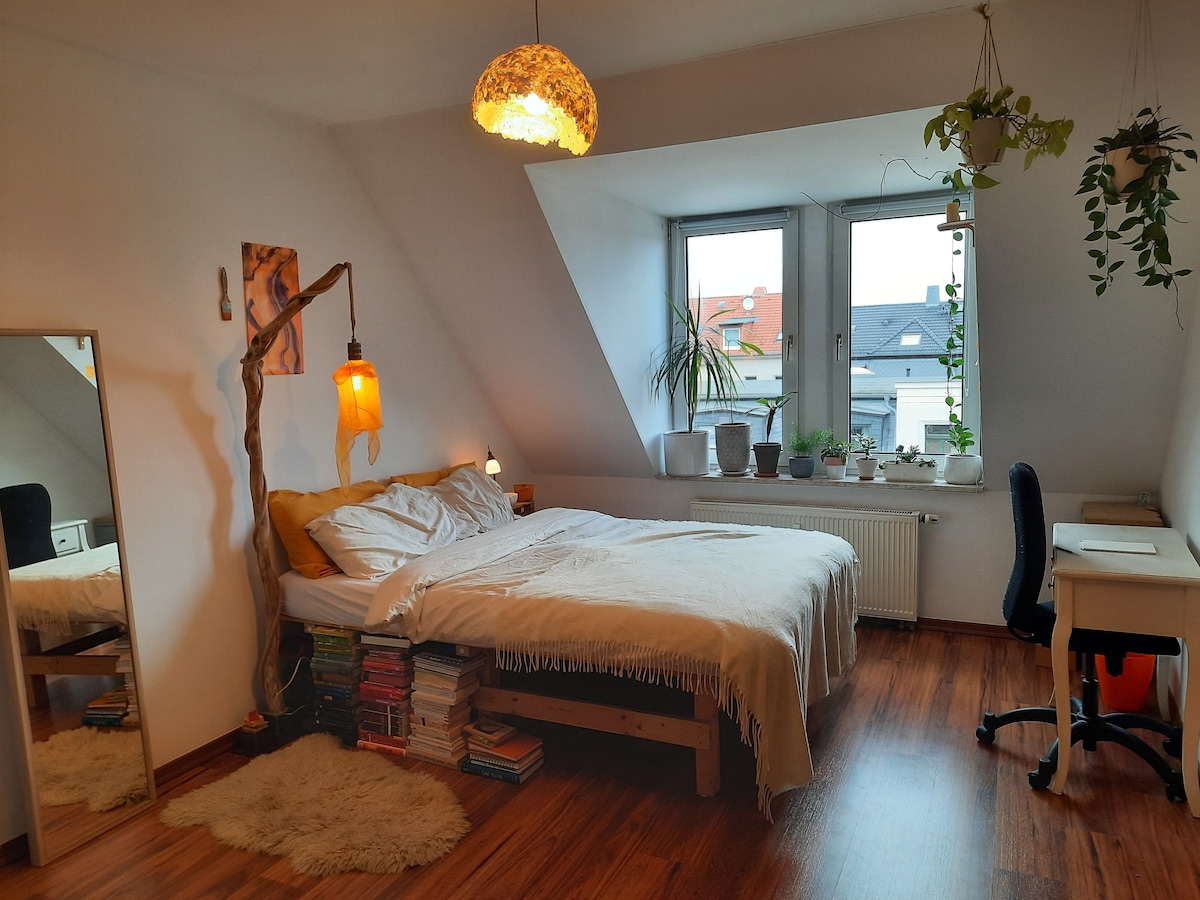A kis lakásom a város szívében található. 65 négyzetméteren egy kényelmesen berendezett, kis konyhával, 2 hálószobával és egy szép fürdőszobával rendelkező lakást találsz. A Waldstrassenviertel és a városközpont között minden városi látványosság sétatávolságra található.