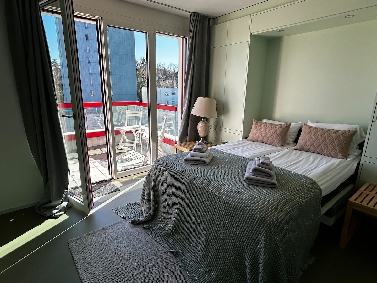 Stílusos stúdió Zürichben~ Tetőtéri grill~Íróasztal