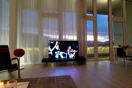 Új, tágas, csendes apartman (115m2), fantasztikus kilátással a folyóra és a zöld dombokra. A vendégek rendelkezésére áll egy privát parkoló a mélygarázsban, fali doboz tölteni az autót, egy high-end konyha, sütő, gőzös, mosogatógép, stb, saját mosógép/szárítógép, két fürdőszoba (zuhanyzó/wc, fürdőkád/wc), két hálószoba és egy kényelmes irodahelyiség. Zürich városközpontja tömegközlekedéssel mindössze 10 percre található, és kerékpárral is megközelíthető. Tökéletes a hosszú távú foglalásokhoz és a családoknak